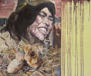Known for paintings based on historical Chinese photographs, Hung Liu’s subjects over the years have been prostitutes, refugees, street performers, soldiers, laborers, and prisoners, among others. As a painter, Liu challenges the documentary authority of historical Chinese photographs by subjecting them to the more reflective process of painting. Much of the meaning of Liu’s painting comes from the way the washes and drips dissolve the documentary images, suggesting the passage of memory into history, while working to uncover the cultural and personal narratives fixed – but often concealed – in the photographic instant. Washing her subjects in veils of dripping linseed oil, she both “preserves and destroys the image.” Liu has invented a kind of weeping realism that surrenders to the erosion of memory and the passage of time, while also bringing faded photographic images vividly to life as rich, facile paintings. She summons the ghosts of history to the present. In effect, Liu turns old photographs into new paintings.