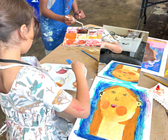 During the week, participants engage in skill-based instruction, hands-on structured projects, and open studio time to explore and experiment. Our instructors are practicing artists who create a fun, responsive, and supportive studio environment for all young artists to share and celebrate art. Monthly themes and project activities incorporate drawing, painting, sculpture, textiles, and mixed media art inspired by the art of local and contemporary artists of various intersections of identities, cultural experiences, and backgrounds. Participants’ projects may include textiles, collages, photography book arts, clay/ceramics, bookmaking, and puppetry. On the last day of the program, our young artists celebrate and share their artworks in a mini-exhibition with families and friends.