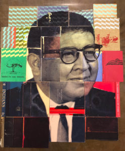 Keith Secola’s residency project explores Native American identity by overlaying the images from two archival photo albums representing his family and Ute Indian Heritage onto collaged and deconstructed American history books. Secola blends printmaking, archival photography, illustrations, and murals depicting Native American life. For this exhibition, Secola creates an immersive installation combining collage pieces and hand painted graphic murals using illustrations from euro-centric Native American stories near the 1492 contact period. His work highlights the differences between real identities of indigenous people and widely circulated fantastical images.