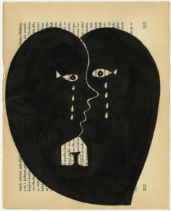 Using simple and playful black and white paintings and drawings, Yen-Hua Lee investigates ideas of home, human memories and the passing of time. Lee paints on book pages playing with text on the page and searching for remnants of human memories documented on paper and lost over the passage of time. Yen-hua’s installation explores memories of home both real and imagined, with threads and nails connecting plane to plane. This site-specific installation invites viewers to enter her home and to reimagine their own experience and ideas of home.