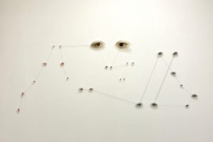 Alison Chen, is a visual artist working in video, performance, and photography. She is interested in the complex nature of our closest relationships. Through her work, she examines the complexities and confusions that surround intimacy, the dynamics of vulnerability, and the areas where our preconceived notions fall short. Her installation, A Map of Our Eyes explores the connections between multiple generations of women through snapshots from her family archive. Paging through albums, she surveyed the gazes of mothers and daughters captured in these images. Delicate thread strings together moments and builds relationships that span generations.